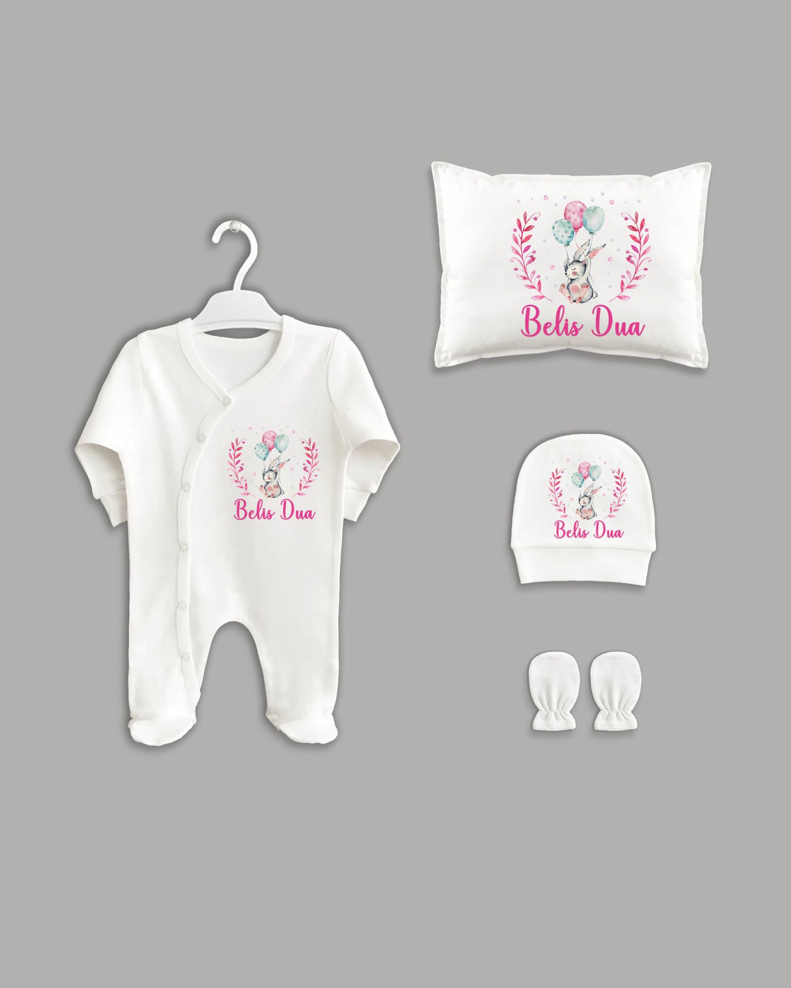 Balonlu Tavşan Modeli 4'lü Organik İsme Özel Hastane Çıkışı